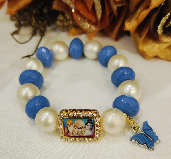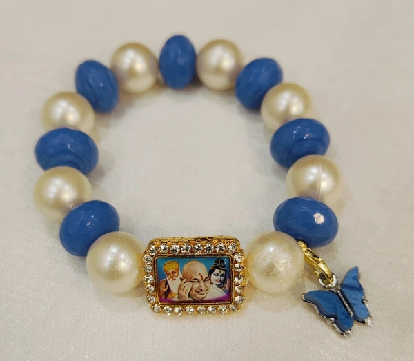 Jai Guruji Blue And White Bracelet