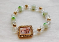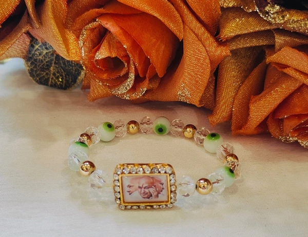 Jai Guruji Bracelet With Green Evil Eye And White Crystals