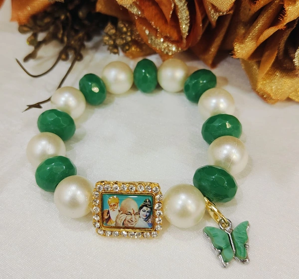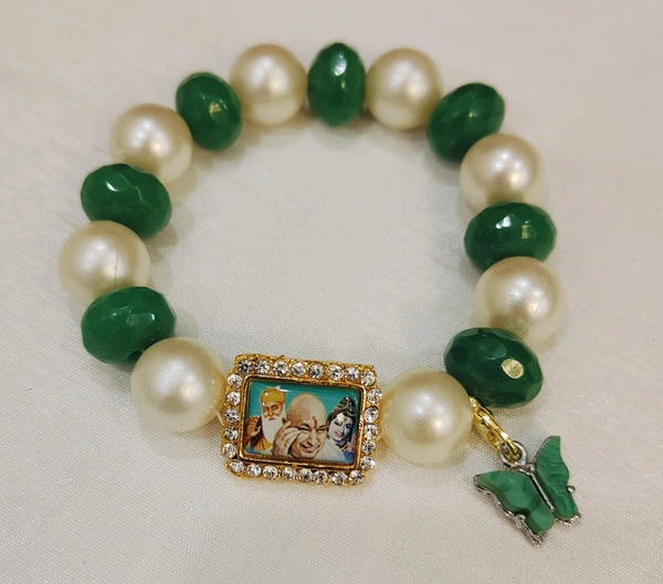 Jai Guruji Green And White Bracelet